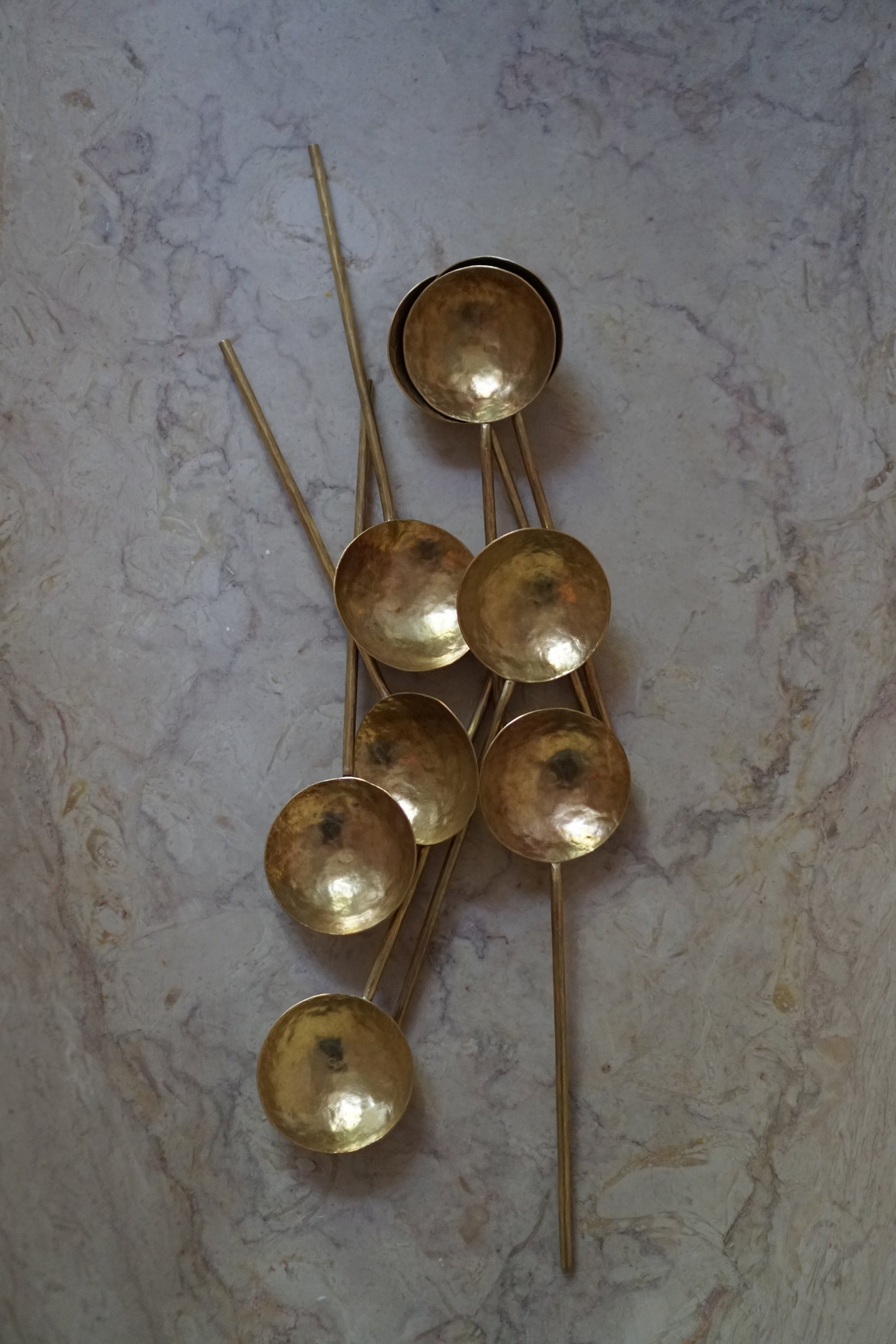 This Brass serving spoon we love for serving a donabe or any stews and soups, especially love it sitting out with other spoon collections in the kitchen.